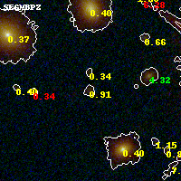 Object #730   x,y = (1911, 2238)   RA, Dec = (00:32:13.728, 18:07:37.20) = (8.05720, 18.12700)   BPZ = 0.909 [0.677--1.025]   type = 8.70 (SB2_B10 - SB1_B10)   stellarity = 0.00   chisq2 = 0.78   ODDS = 0.65   z_cluster = 0.396