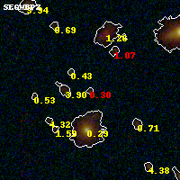 Object #781   x,y = (1653, 2107)   RA, Dec = (00:32:14.832, 18:07:29.28) = (8.06180, 18.12480)   BPZ = 0.299 [0.154--4.185]   type = 9.20 (SB2_B10 - SB3_B10)   stellarity = 0.00   chisq2 = 1.49   ODDS = 0.09   z_cluster = 0.396