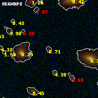 Black segments are analyzed here. Roll mouse over color images to view segments. Best viewed in a wide browser window (1200 pixels or more). Download SED & P(z) plots to view larger versions.