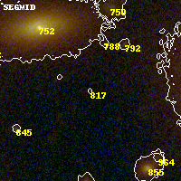 Object #817   x,y = (2707, 2035)   RA, Dec = (00:32:10.392, 18:07:24.96) = (8.04330, 18.12360)   BPZ = 0.848 [0.267--3.523]   type = 9.50 (SB3_B10 - SB2_B10)   stellarity = 0.08   chisq2 = 1.06   ODDS = 0.12   z_cluster = 0.396