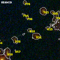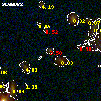 Black segments are analyzed here. Roll mouse over color images to view segments. Best viewed in a wide browser window (1200 pixels or more). Download SED & P(z) plots to view larger versions.