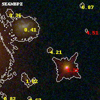 Black segments are analyzed here. Roll mouse over color images to view segments. Best viewed in a wide browser window (1200 pixels or more). Download SED & P(z) plots to view larger versions.