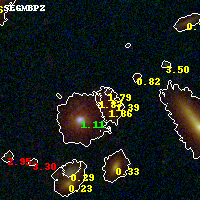 Object #829   x,y = (3325, 2007)   RA, Dec = (00:32:07.776, 18:07:23.16) = (8.03240, 18.12310)   BPZ = 1.872 [1.139--2.446]   type = 6.50 (Scd_B10 - Sbc_B10)   stellarity = 0.00   chisq2 = 0.28   ODDS = 0.27   z_cluster = 0.396