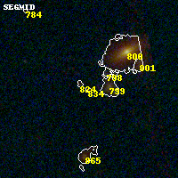 Black segments are analyzed here. Roll mouse over color images to view segments. Best viewed in a wide browser window (1200 pixels or more). Download SED & P(z) plots to view larger versions.