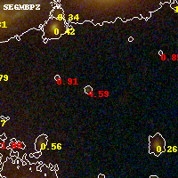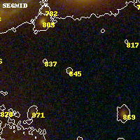 Object #845   x,y = (2625, 1994)   RA, Dec = (00:32:10.728, 18:07:22.44) = (8.04470, 18.12290)   BPZ = 4.595 [4.420--4.705]   type = 11.00 (SB11_A_0_l)   stellarity = 0.79   chisq2 = 1.06   ODDS = 1.00   z_cluster = 0.396