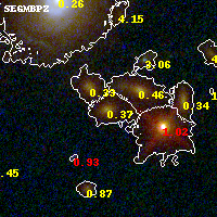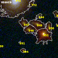 Object #848   x,y = (2193, 1946)   RA, Dec = (00:32:12.552, 18:07:19.56) = (8.05230, 18.12210)   BPZ = 0.369 [0.263--0.425]   type = 4.10 (Ell4_A_0 - ES0_B10)   stellarity = 0.03   chisq2 = 0.04   ODDS = 0.73   z_cluster = 0.396