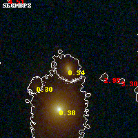 Object #853   x,y = (3182, 1961)   RA, Dec = (00:32:08.376, 18:07:20.28) = (8.03490, 18.12230)   BPZ = 0.339 [0.267--0.377]   type = 3.80 (Ell4_A_0 - Ell5_A_0)   stellarity = 0.03   chisq2 = 0.09   ODDS = 0.93   z_cluster = 0.396