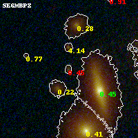Black segments are analyzed here. Roll mouse over color images to view segments. Best viewed in a wide browser window (1200 pixels or more). Download SED & P(z) plots to view larger versions.