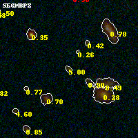 Black segments are analyzed here. Roll mouse over color images to view segments. Best viewed in a wide browser window (1200 pixels or more). Download SED & P(z) plots to view larger versions.