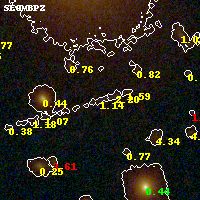 Object #887   x,y = (2893, 1901)   RA, Dec = (00:32:09.600, 18:07:16.68) = (8.04000, 18.12130)   BPZ = 1.135 [0.133--2.429]   type = 10.00 (SB3_B10)   stellarity = 0.00   chisq2 = 0.50   ODDS = 0.24   z_cluster = 0.396
