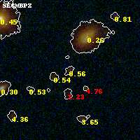 Black segments are analyzed here. Roll mouse over color images to view segments. Best viewed in a wide browser window (1200 pixels or more). Download SED & P(z) plots to view larger versions.