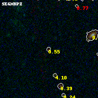 Object #954   x,y = (1641, 1770)   RA, Dec = (00:32:14.880, 18:07:09.12) = (8.06200, 18.11920)   BPZ = 0.553 [0.202--4.072]   type = 7.50 (SB1_B10 - Scd_B10)   stellarity = 0.01   chisq2 = 0.06   ODDS = 0.12   z_cluster = 0.396