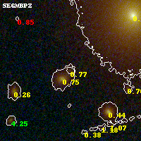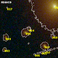 Object #964   x,y = (2782, 1961)   RA, Dec = (00:32:10.080, 18:07:20.28) = (8.04200, 18.12230)   BPZ = 0.769 [0.338--1.112]   type = 8.10 (SB1_B10 - SB2_B10)   stellarity = 0.00   chisq2 = 0.24   ODDS = 0.30   z_cluster = 0.396