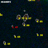 Black segments are analyzed here. Roll mouse over color images to view segments. Best viewed in a wide browser window (1200 pixels or more). Download SED & P(z) plots to view larger versions.