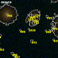 Object #1010 x,y = (2944, 2268) RA, Dec = (01:42:52.296, 44:37:49.44) = (25.71790, 44.63040) BPZ = 0.763 [0.315--5.534] type = 3.00 (Ell5_A_0) chisq2 = 0.70 ODDS = 0.07 z_cluster = 0.341