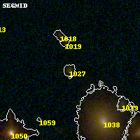 Object #1027 x,y = (2339, 1853) RA, Dec = (01:42:55.704, 44:37:24.60) = (25.73210, 44.62350) BPZ = 4.238 [4.061--4.348] type = 8.20 (SB1_B10 - SB2_B10) chisq2 = 0.20 ODDS = 0.98 z_cluster = 0.341