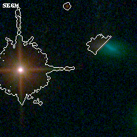 Object #1065 x,y = (3298, 1768) RA, Dec = (01:42:50.328, 44:37:19.20) = (25.70970, 44.62200) BPZ = 4.688 [0.310--5.379] type = 8.60 (SB2_B10 - SB1_B10) chisq2 = 0.93 ODDS = 0.48 z_cluster = 0.341