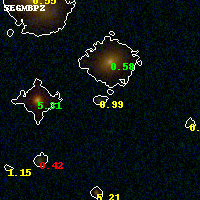 Object #1069 x,y = (2968, 1753) RA, Dec = (01:42:52.176, 44:37:18.48) = (25.71740, 44.62180) BPZ = 0.988 [0.359--1.134] type = 9.40 (SB2_B10 - SB3_B10) chisq2 = 0.32 ODDS = 0.38 z_cluster = 0.341