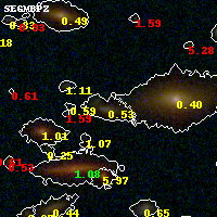 Object #1118 x,y = (2667, 1583) RA, Dec = (01:42:53.856, 44:37:08.04) = (25.72440, 44.61890) BPZ = 0.527 [0.040--0.711] type = 7.30 (Scd_B10 - SB1_B10) chisq2 = 0.17 ODDS = 0.40 z_cluster = 0.341