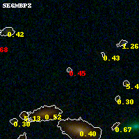 Object #1170 x,y = (2826, 1423) RA, Dec = (01:42:52.968, 44:36:58.68) = (25.72070, 44.61630) BPZ = 0.447 [0.156--0.474] type = 10.00 (SB3_B10) chisq2 = 6.95 ODDS = 0.91 z_cluster = 0.341