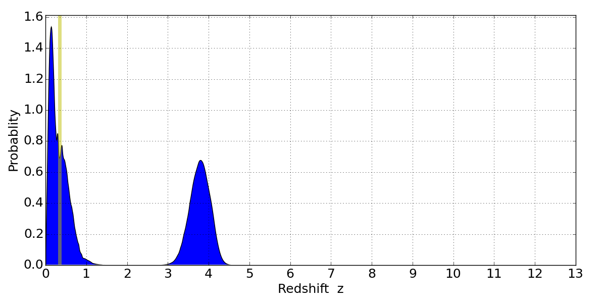 Best viewed in a wide browser window (1200 pixels or more). Download SED & P(z) plots to view larger versions.