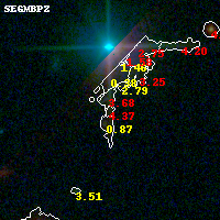 Object #12 x,y = (2080, 3923) RA, Dec = (01:42:57.168, 44:39:28.44) = (25.73820, 44.65790) BPZ = 4.374 [4.230--4.508] type = 11.00 (SB11_A_0_l) chisq2 = 5.38 ODDS = 1.00 z_cluster = 0.341