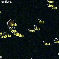Object #239 x,y = (3002, 3156) RA, Dec = (01:42:51.984, 44:38:42.72) = (25.71660, 44.64520) BPZ = 0.562 [0.154--3.882] type = 9.40 (SB2_B10 - SB3_B10) chisq2 = 0.26 ODDS = 0.06 z_cluster = 0.341