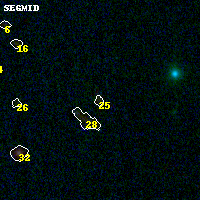 Object #25 x,y = (2479, 3911) RA, Dec = (01:42:54.912, 44:39:28.08) = (25.72880, 44.65780) BPZ = 0.304 [0.102--3.664] type = 8.60 (SB2_B10 - SB1_B10) chisq2 = 0.11 ODDS = 0.21 z_cluster = 0.341