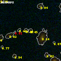 Object #250 x,y = (2333, 3120) RA, Dec = (01:42:55.752, 44:38:40.56) = (25.73230, 44.64460) BPZ = 0.447 [0.173--3.630] type = 8.40 (SB1_B10 - SB2_B10) chisq2 = 0.75 ODDS = 0.30 z_cluster = 0.341