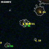 Object #276 x,y = (1690, 3056) RA, Dec = (01:42:59.352, 44:38:36.60) = (25.74730, 44.64350) BPZ = 3.449 [3.335--3.522] type = 9.50 (SB3_B10 - SB2_B10) chisq2 = 0.33 ODDS = 1.00 z_cluster = 0.341