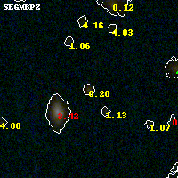 Object #334 x,y = (2001, 2973) RA, Dec = (01:42:57.600, 44:38:31.56) = (25.74000, 44.64210) BPZ = 0.199 [0.115--4.233] type = 4.00 (Ell4_A_0) chisq2 = 0.39 ODDS = 0.55 z_cluster = 0.341