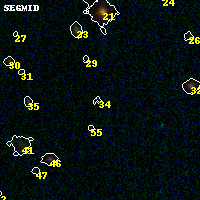 Object #34 x,y = (2307, 3845) RA, Dec = (01:42:55.896, 44:39:23.76) = (25.73290, 44.65660) BPZ = 3.504 [0.189--4.057] type = 10.50 (SB11_A_0_l - SB3_B10) chisq2 = 0.30 ODDS = 0.35 z_cluster = 0.341