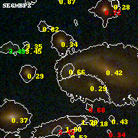 Object #342 x,y = (2424, 2979) RA, Dec = (01:42:55.224, 44:38:31.92) = (25.73010, 44.64220) BPZ = 0.661 [0.547--0.819] type = 7.80 (SB1_B10 - Scd_B10) chisq2 = 0.10 ODDS = 0.62 z_cluster = 0.341