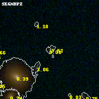 Object #348 x,y = (1760, 2945) RA, Dec = (01:42:58.968, 44:38:29.76) = (25.74570, 44.64160) BPZ = 0.308 [0.067--3.755] type = 7.90 (SB1_B10 - Scd_B10) chisq2 = 0.55 ODDS = 0.16 z_cluster = 0.341