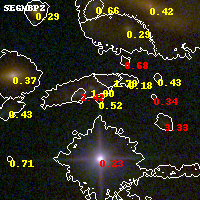 Object #382 x,y = (2427, 2884) RA, Dec = (01:42:55.224, 44:38:26.16) = (25.73010, 44.64060) BPZ = 0.522 [0.119--4.322] type = 9.20 (SB2_B10 - SB3_B10) chisq2 = 0.88 ODDS = 0.13 z_cluster = 0.341