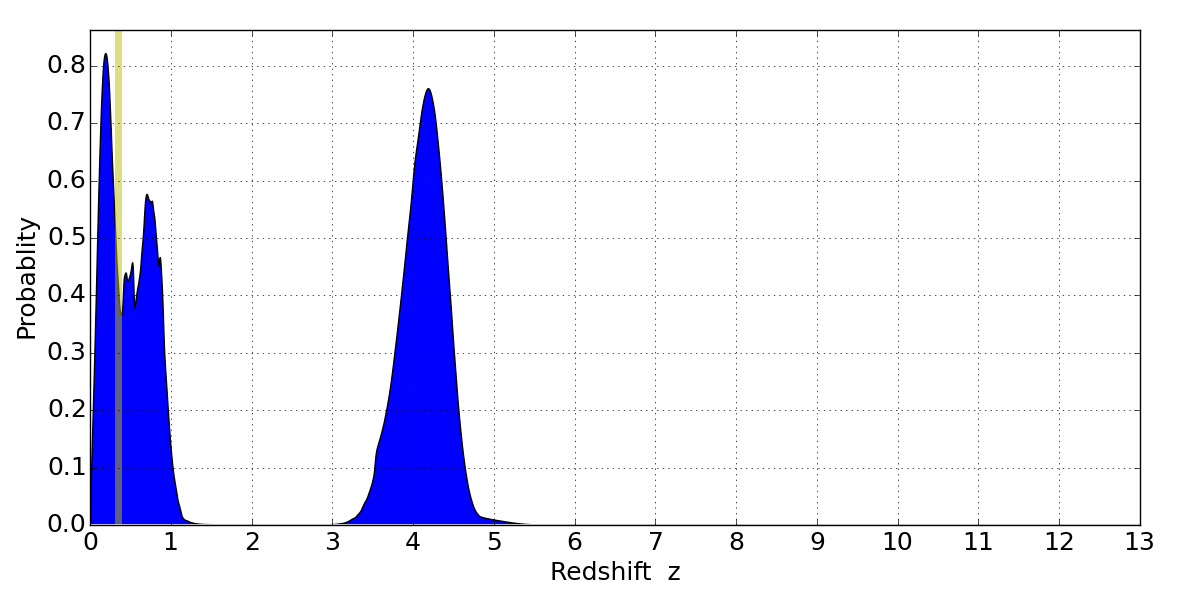 Best viewed in a wide browser window (1200 pixels or more). Download SED & P(z) plots to view larger versions.