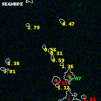 Object #402 x,y = (1420, 2876) RA, Dec = (01:43:00.888, 44:38:25.80) = (25.75370, 44.64050) BPZ = 0.308 [0.073--3.501] type = 8.70 (SB2_B10 - SB1_B10) chisq2 = 0.46 ODDS = 0.24 z_cluster = 0.341