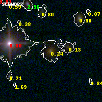 Object #428 x,y = (3304, 2813) RA, Dec = (01:42:50.280, 44:38:22.20) = (25.70950, 44.63950) BPZ = 0.241 [0.151--0.288] type = 3.10 (Ell5_A_0 - Ell4_A_0) chisq2 = 0.06 ODDS = 0.85 z_cluster = 0.341