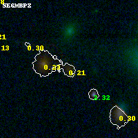 Object #440 x,y = (3639, 2796) RA, Dec = (01:42:48.408, 44:38:21.12) = (25.70170, 44.63920) BPZ = 0.207 [0.095--4.087] type = 4.20 (Ell4_A_0 - ES0_B10) chisq2 = 0.53 ODDS = 0.54 z_cluster = 0.341