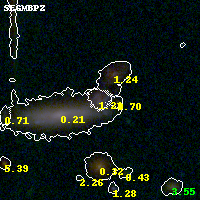 Object #459 x,y = (1547, 3059) RA, Dec = (01:43:00.168, 44:38:36.60) = (25.75070, 44.64350) BPZ = 1.209 [1.100--1.271] type = 9.00 (SB2_B10) chisq2 = 0.30 ODDS = 0.89 z_cluster = 0.341