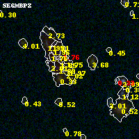 Object #502 x,y = (3143, 2666) RA, Dec = (01:42:51.192, 44:38:13.20) = (25.71330, 44.63700) BPZ = 1.966 [1.655--2.180] type = 7.80 (SB1_B10 - Scd_B10) chisq2 = 0.24 ODDS = 0.64 z_cluster = 0.341