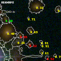 Object #537 x,y = (2075, 2672) RA, Dec = (01:42:57.192, 44:38:13.56) = (25.73830, 44.63710) BPZ = 0.694 [0.258--0.787] type = 7.30 (Scd_B10 - SB1_B10) chisq2 = 0.23 ODDS = 0.78 z_cluster = 0.341