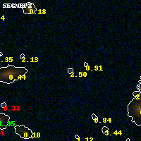 Object #571 x,y = (3548, 2634) RA, Dec = (01:42:48.912, 44:38:11.40) = (25.70380, 44.63650) BPZ = 2.497 [1.076--2.755] type = 10.50 (SB11_A_0_l - SB3_B10) chisq2 = 0.10 ODDS = 0.38 z_cluster = 0.341