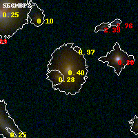 Object #59 x,y = (2133, 3682) RA, Dec = (01:42:56.856, 44:39:14.04) = (25.73690, 44.65390) BPZ = 0.396 [0.301--0.435] type = 3.10 (Ell5_A_0 - Ell4_A_0) chisq2 = 0.09 ODDS = 0.77 z_cluster = 0.341