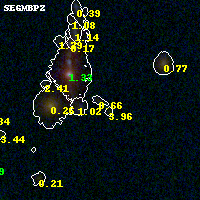 Object #591 x,y = (3695, 2585) RA, Dec = (01:42:48.096, 44:38:08.16) = (25.70040, 44.63560) BPZ = 0.662 [0.400--0.977] type = 9.70 (SB3_B10 - SB2_B10) chisq2 = 0.74 ODDS = 0.37 z_cluster = 0.341