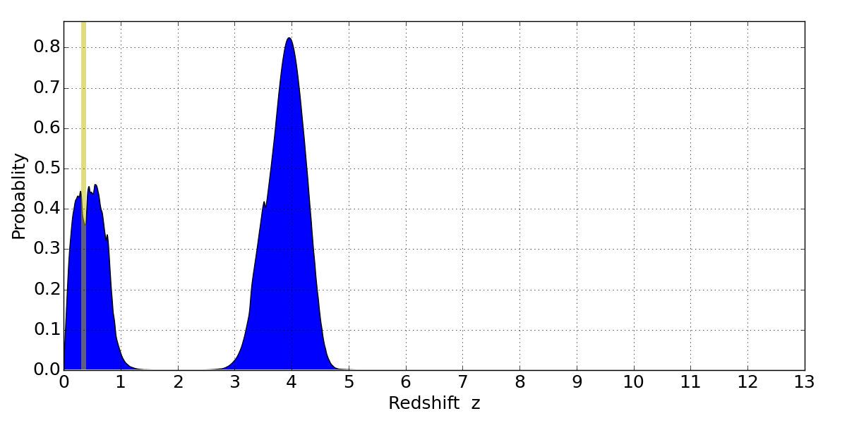 Best viewed in a wide browser window (1200 pixels or more). Download SED & P(z) plots to view larger versions.