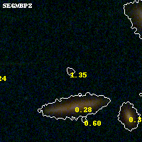Object #661 x,y = (1563, 2497) RA, Dec = (01:43:00.072, 44:38:03.12) = (25.75030, 44.63420) BPZ = 1.352 [0.320--1.818] type = 7.80 (SB1_B10 - Scd_B10) chisq2 = 0.73 ODDS = 0.24 z_cluster = 0.341