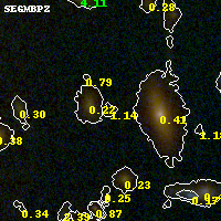 Object #672 x,y = (2729, 2479) RA, Dec = (01:42:53.520, 44:38:02.04) = (25.72300, 44.63390) BPZ = 1.140 [0.082--2.026] type = 9.10 (SB2_B10 - SB3_B10) chisq2 = 0.33 ODDS = 0.17 z_cluster = 0.341