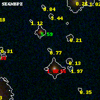 Object #675 x,y = (3595, 2482) RA, Dec = (01:42:48.648, 44:38:02.04) = (25.70270, 44.63390) BPZ = 0.770 [0.138--5.120] type = 8.50 (SB2_B10 - SB1_B10) chisq2 = 0.98 ODDS = 0.07 z_cluster = 0.341