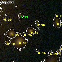 Object #683 x,y = (2626, 2456) RA, Dec = (01:42:54.096, 44:38:00.60) = (25.72540, 44.63350) BPZ = 0.380 [0.304--0.417] type = 3.50 (Ell4_A_0 - Ell5_A_0) chisq2 = 0.12 ODDS = 0.91 z_cluster = 0.341